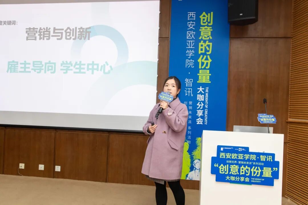 《创意的份量》大咖分享会活动适逢西安欧亚学院建校30周年与智讯西安创立15周年。此次活动紧密围绕学校“学生中心、雇主导向”办学理念与“营销创新年”战略背景,紧跟市场前沿,以创意为切入口,联合优质雇主企业,共同将品牌营销从方法论推向更具生命力的创新实践场,为师生打造紧跟前沿、实时更新的知识技能资源池。