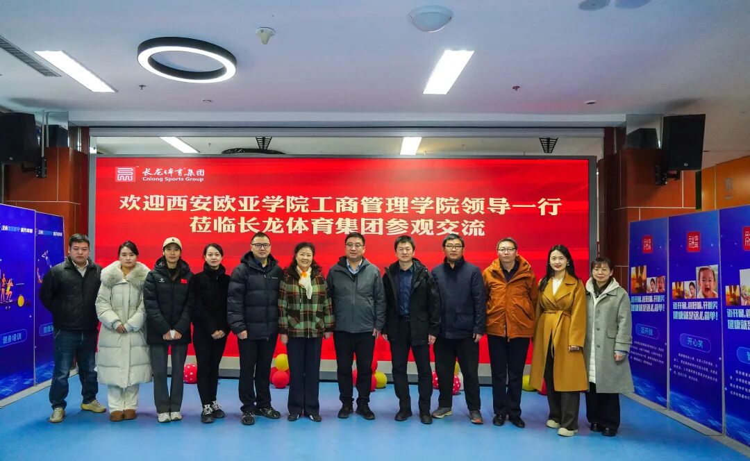 2025年1月20日上午,西安欧亚学院工商管理学院院长吴睿、院长助理赵江波、学院专家蔡军教授、体育经济与管理专业负责人谭启鸿和潘媛媛、教师代表吴少艾等一行前往长龙体育集团进行走访座谈,与企业共商校企合作事宜。长龙体育集团董事长吉云波率集团董事、综合部经理陈积瑾以及旗下的澳瑞特威赢赛事管理(北京)有限公司副总经理杨福荣、陕西全民健身服务有限公司总经理李鹏、智赛通大数据有限公司总经理邵凯丽、威赢赛事运营有限公司项目经理张雪等管理人员与我院走访团队进行了深入交流。